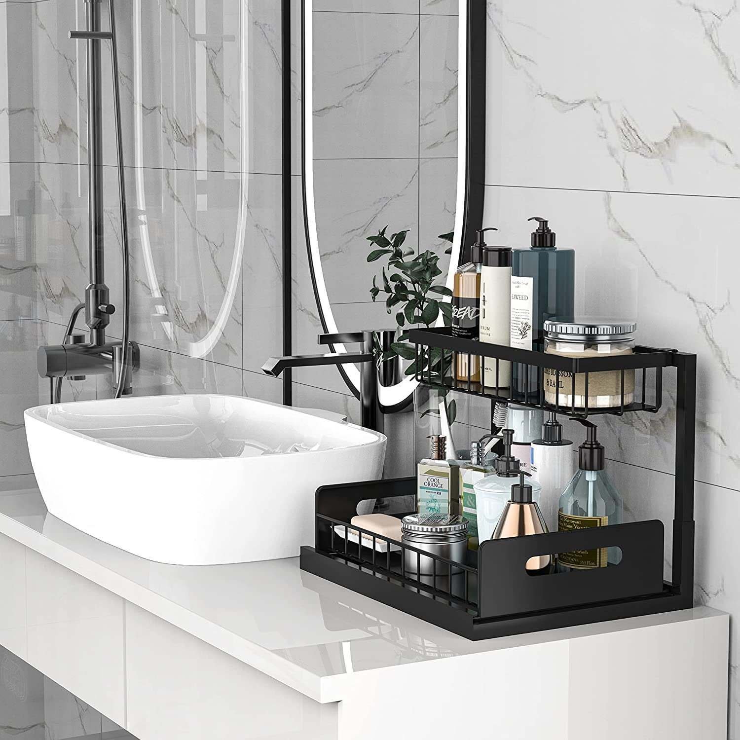 Home > 2 Tier Under Sink Organizers Pull Out Under Cabinet Basket Storage Shelf Sliding Drawer for Kitchen Bathroom