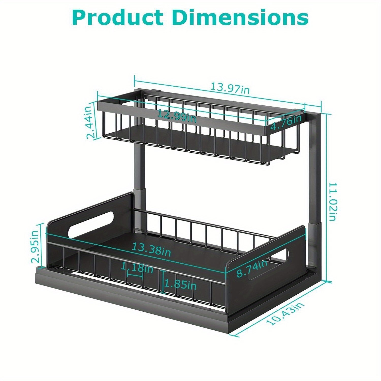 *Considerate Dimensions*:The overall dimension is 13.97x10.43x11.02in and the upper basket is thinner than the bottoms’; it is suitable for most under sink cabinets; effectively using the space under the sink to store cleaning supplies; making your items well organized and stored in an orderly manner. Say goodbye to the cluttered space.