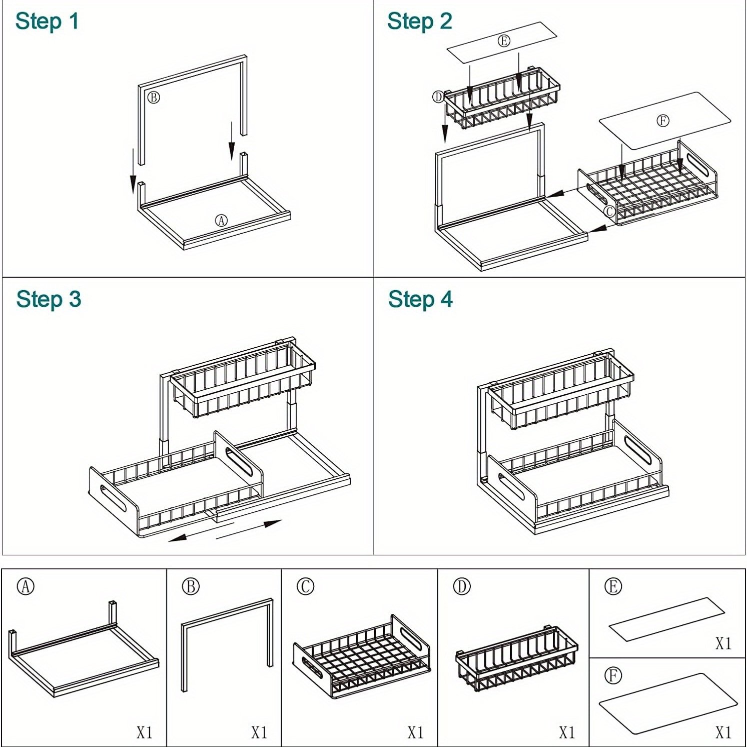 *Multi-purposes Organizers*:Perfectly fits the under sinks; bathrooms; kitchens; food pantries; offices and other places. It also can be used as bathroom toiletries storage; kitchen spice rack or office supplies shelf; etc.. Modern and stylish minimalist design can be integrated into most household styles perfectly.